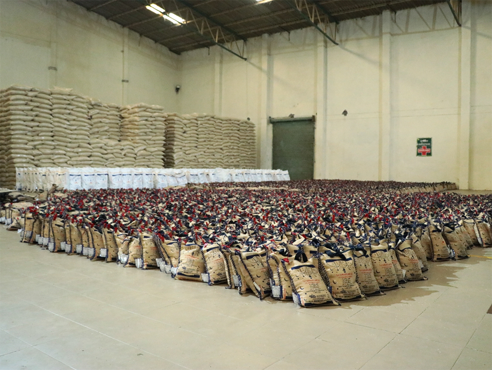 The extensive process for treatment of paddy initially starts with parboiling and drying of the raw paddy. Sella (Parboiled) Rice Plant is well designed & fabricated with blend SS&MS sheets. The fully automatic parboiling process plant has a capacity of 20 MT/hour and uses Reverse Osmosis System with capacity of 6600 liters per hour under, strict temperature control system. This ensures that each grain is free from bacterial generation or fermentation while retaining their rich natural aroma. This is followed by one of the three MS dryers, each having 28 ton capacity and sensor based paddy drying units which give uniform drying of paddy and reduces the broken grains at the stage of milling.