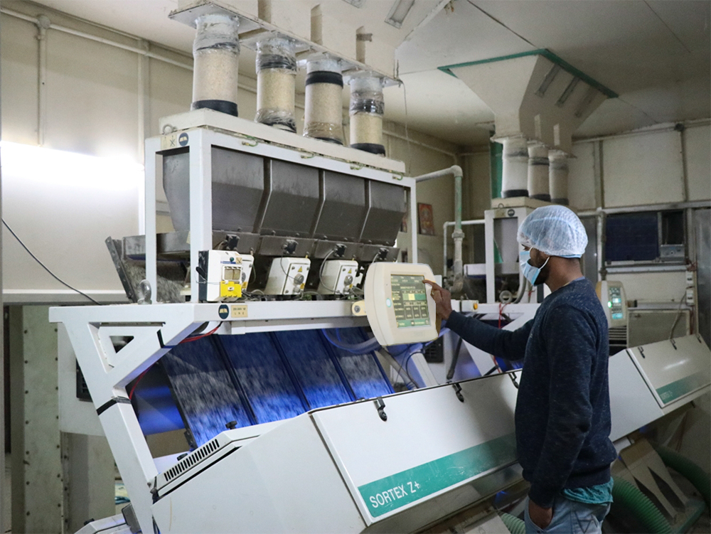 Two milling plants, fitted with latest paddy cleaning, rice polishing and whitening machines are capable of processing 18 metric tons of paddy per hour. Rice is sorted as per length and texture of grain, with sorting machines sourced from Buhler, England and Satake Corporation, Japan having capacity of 10 ton rice per hour.