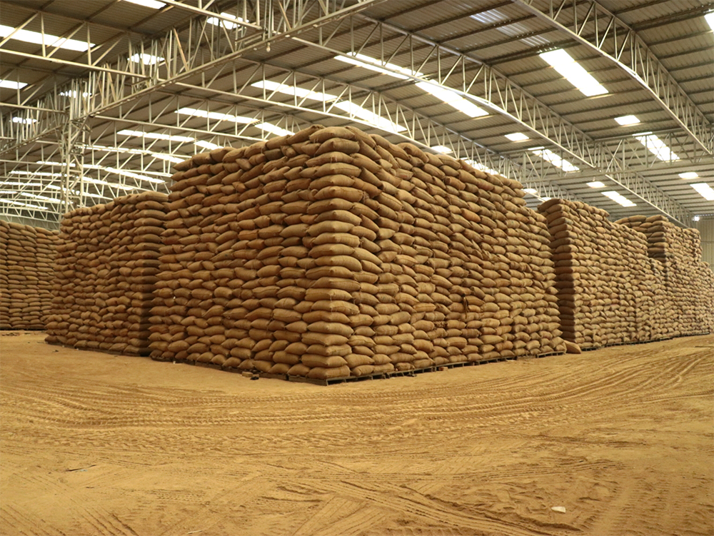 The extensive process for treatment of paddy initially starts with parboiling and drying of the raw paddy. Sella (Parboiled) Rice Plant is well designed & fabricated with blend SS&MS sheets. The fully automatic parboiling process plant has a capacity of 20 MT/hour and uses Reverse Osmosis System with capacity of 6600 liters per hour under, strict temperature control system. This ensures that each grain is free from bacterial generation or fermentation while retaining their rich natural aroma. This is followed by one of the three MS dryers, each having 28 ton capacity and sensor based paddy drying units which give uniform drying of paddy and reduces the broken grains at the stage of milling.